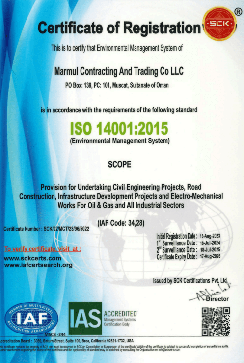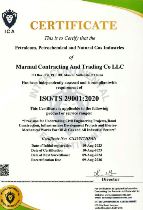 Marmul Group has demonstrated its technical expertise through a range of major infrastructure and construction projects. Our capabilities include the casting of precast sleepers for PDO contractors and the operation of advanced Ready-Mix Concrete (RMC) plants. We have successfully executed multiple road projects across Oman, such as the design and construction of internal roads in Jalan Buwali and Izki, as well as the paving of connecting roads in Wilayat Al Mudhaibi (Package 2) valued at 2 million OMR. Ongoing works also include the construction of Vitality and Areal Roads in Wilayat Sinaw (Al Jamal–Sinaw Road), further reinforcing our reputation for quality and reliability.
